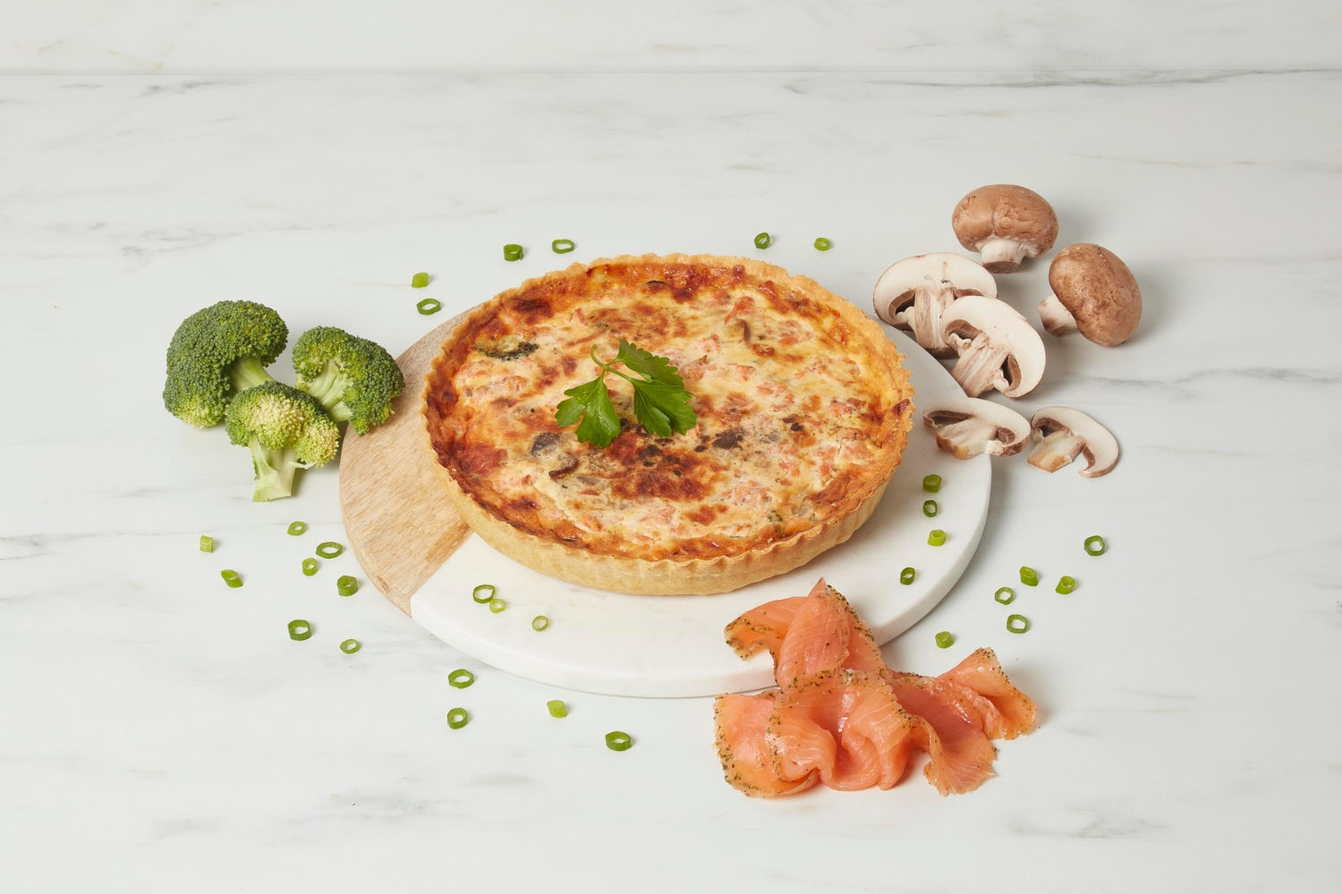 A delightful quiche brimming with flaky smoked salmon, tender broccoli, and a rich blend of egg and Windsor's signature double cream cheese.